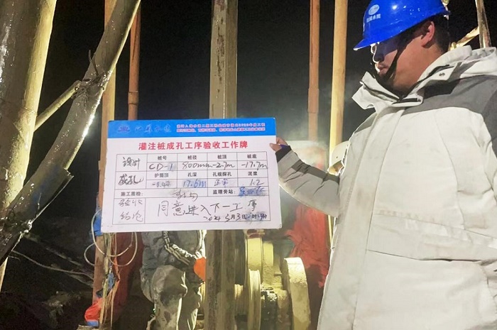 当天晚上11时左右,陶圩河闸站最后一根灌注桩成功浇筑完成,标志着陶圩河闸站基础处理全部完成,为全面开始主体工程施工奠定了基础。项目部响应省厅要求,所有灌注桩均实行举牌验收,切实保证重要隐蔽工程施工质量。