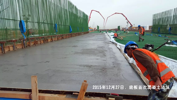 在施工中,参建人员不断学习当地施工规范要求,并积极向兄弟队伍学习成功经验。在溢流渠的施工中不断加快施工速度,进入2016年以来,几乎每晚都有混凝土浇筑,到发稿时止完成溢流渠钢筋制安约390T,浇筑底板混凝土约1300m³,完成橡胶止水带安装约1100 m。值得一提的是2016年元旦,四航项目部统计浇筑近2000方混凝土,取得2016年的开门红,其中包括我公司的240方,成绩显著。